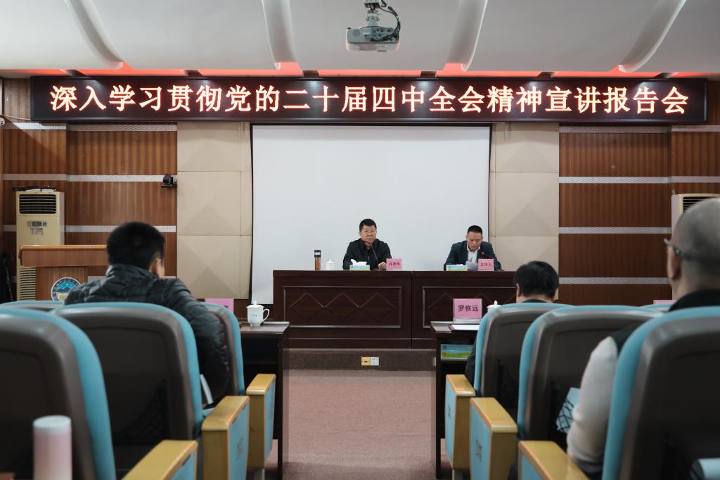 1月19日上午,学校在慈云教学楼AT21召开深入学习贯彻党的二十届四中全会精神宣讲报告会暨党委理论学习中心组(扩大)会议,校党委书记许茂伟作宣讲报告,校党委委员、副院长李桂鑫主持会议。
